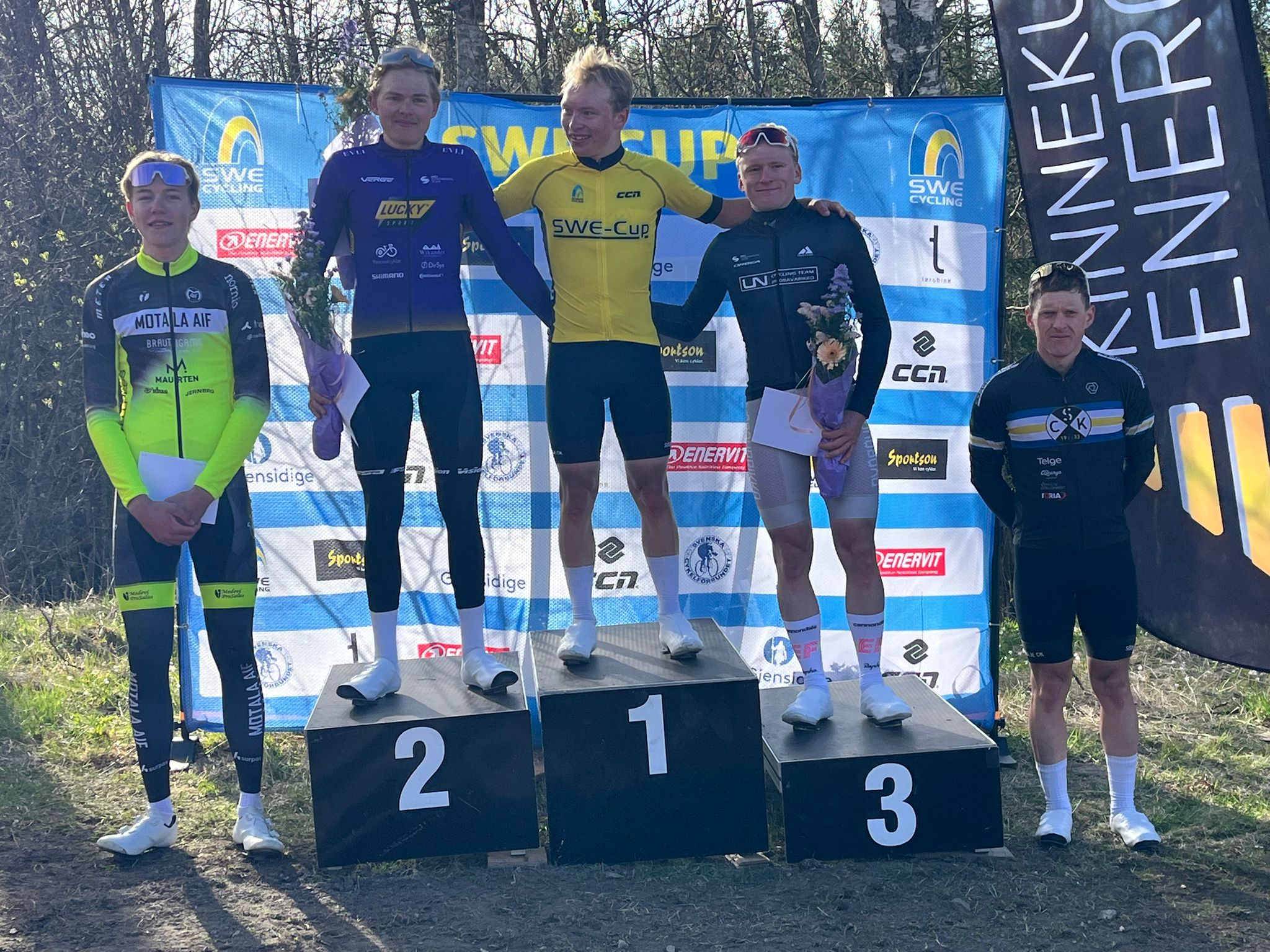 On day one, at the Swedish Cup opener in Kinnekulle, the demanding uphill finish and constant up-and-down style of racing suited Hugo Lennartsson perfectly. Hugo sprinted to an excellent second place from a breakaway group of five riders. The top ten was filled with purple, with Max in sixth, Tedde in seventh, and Peder in ninth. A real show of strength in the opening race.